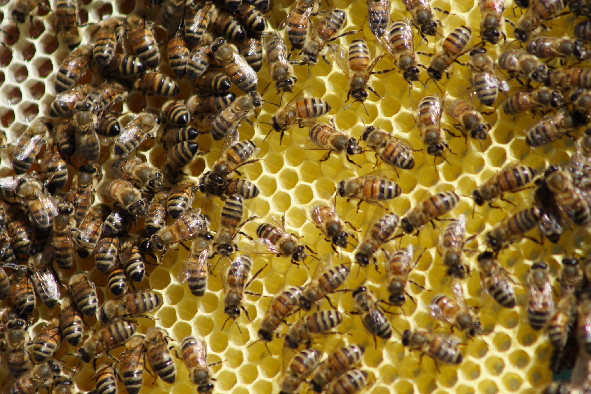 Le travail des abeilles, on peut voir du miel dans les alvéoles. Des polinisateurs essentiels à la vie sur terre. – Yozine / Flickr